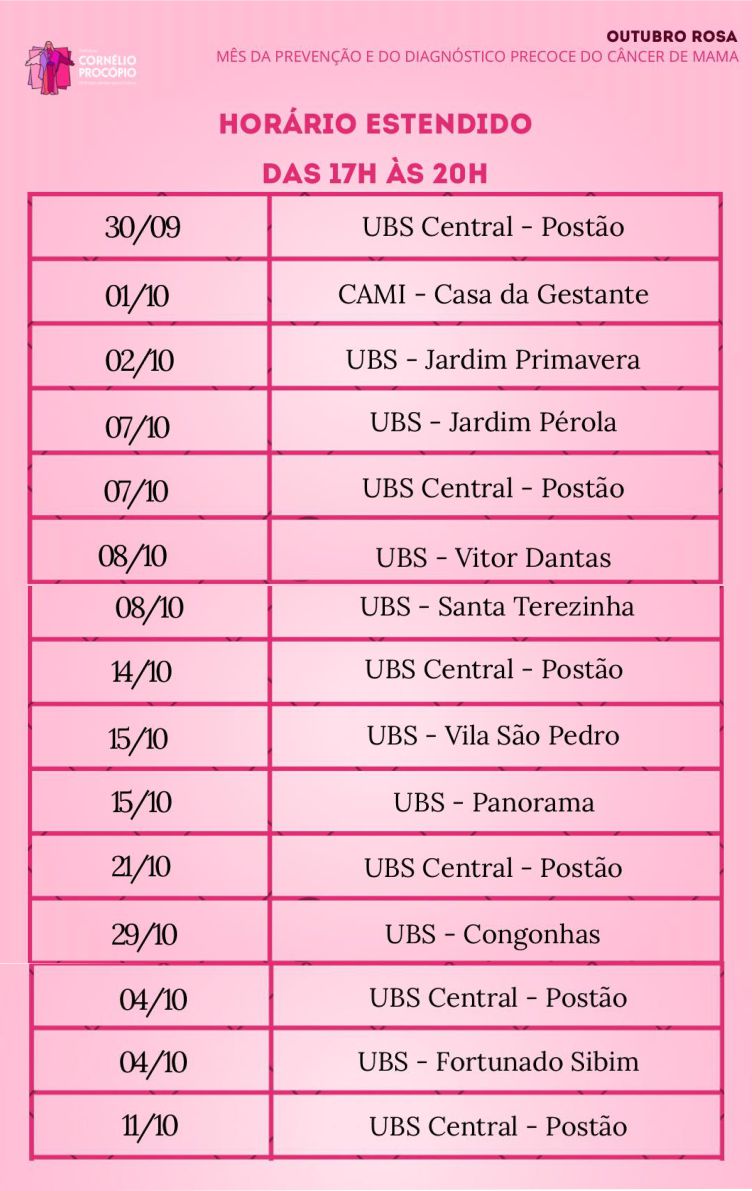 Em decorrência dessa campanha, ao longo do mês as Unidades Básicas de Saúde do município atenderão as mulheres em horário estendido para a realização do exame preventivo e de testes rápidos de HIV, sífilis e hepatites virais.