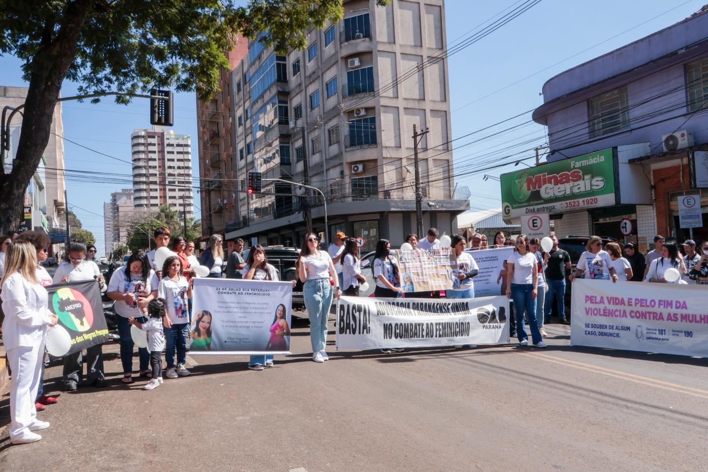A caminhada seguiu do Coreto do Calçadão até a Prefeitura e reuniu representantes do poder público, da Polícia Militar, da Patrulha Maria da Penha, da Ordem dos Advogados do Brasil (OAB), além de profissionais da saúde e da assistência social.
