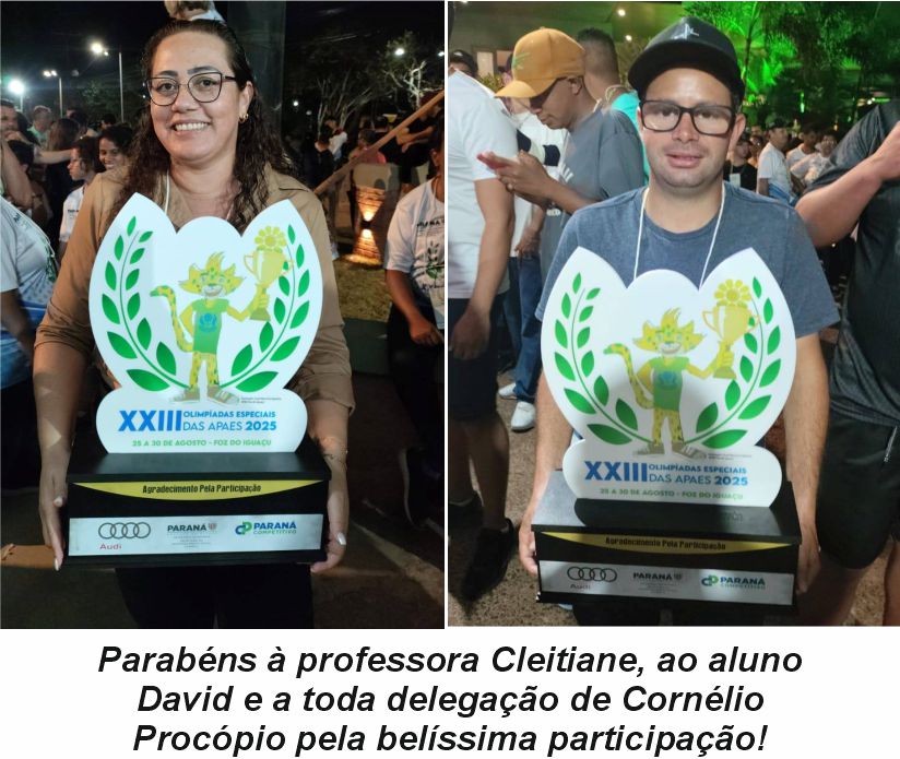 A delegação de Cornélio Procópio marcou presença com grande entusiasmo e espírito esportivo, representando com orgulho a instituição local. Entre os participantes, destacaram-se a professora Cleitiane, que acompanhou a equipe com os demais professores com dedicação e carinho, e o aluno David, da APAE de Santa Cecília do Pavão, que integrou a delegação com garra e alegria, demonstrando seu comprometimento e amor pelo esporte.