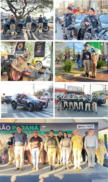 A Polícia Militar do Paraná (PMPR) marcou presença no lançamento da Operação Sinergia III, realizado nesta quarta-feira (17), em Cornélio Procópio. A ação faz parte da Missão Paraná, coordenada pela Secretaria de Estado da Segurança Pública (SESP), e tem papel fundamental para fortalecer a segurança pública na região Norte do estado, ampliando a presença policial e a integração entre as forças de segurança para prevenir crimes e garantir tranquilidade à população. Além disso a comunidade local teve a oportunidade de conhecer um pouco mais sobre cada força de segurança, uma exposição das corporações aproximou a população dos agente de segurança.